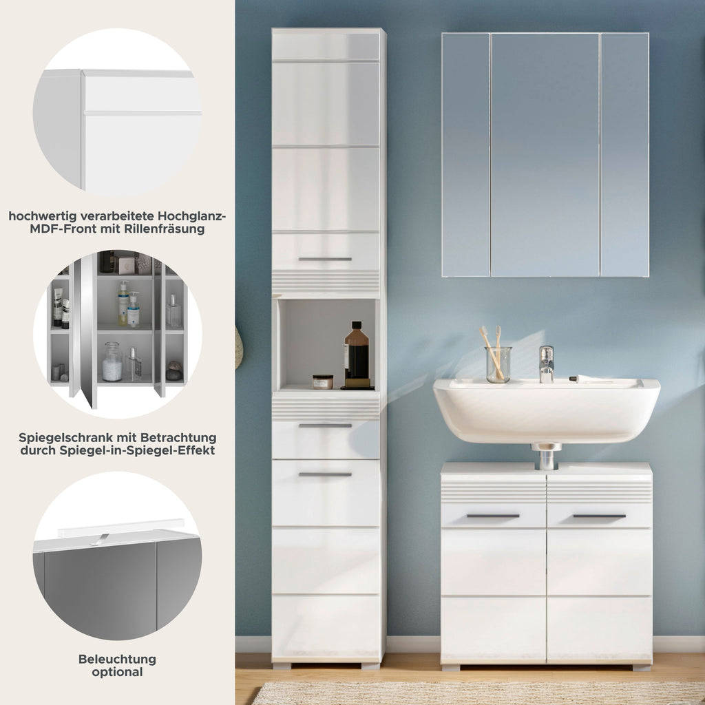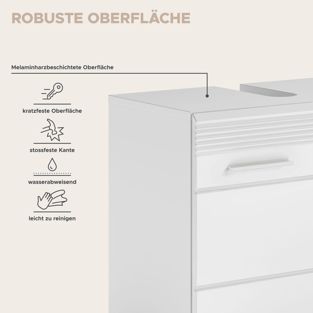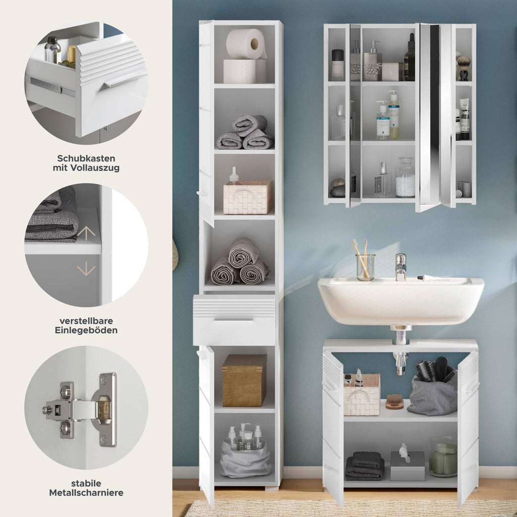 Design/Stil: Modernes und schlankes Design mit einer Kombination aus weißer Nachbildung und weißem Hochglanz tiefzieh, das eine zeitgemäße und ästhetisch ansprechende Optik für das Badezimmer oder den Hauswirtschaftsraum bietet. Die harmonische Farbgebung