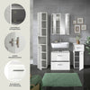 Transformieren Sie Ihr Badezimmer mit unserer eleganten 4-teiligen Badkombination! Diese optimale Lösung besteht aus einem geräumigen Hochschrank, einem praktischen Waschbeckenunterschrank (WBU), einem stilvollen Spiegelschrank und einem zusätzlichen Standschrank. Mit den kompakten Abmessungen von 150 x 185 x 30 cm und einem Typenabstand von 15 cm bietet diese Kombination ausreichend Stauraum für all Ihre Badutensilien und sorgt für Ordnung im Bad. Die hochwertige MDF-Front mit moderner Rillenfräsung verleiht der Badkombination einen zeitgemäßen Look und macht sie gleichzeitig pflegeleicht und langlebig. Ideal für jedes Badezimmer, bringt diese Kombination sowohl Funktionalität als auch Stil in Ihren Raum!