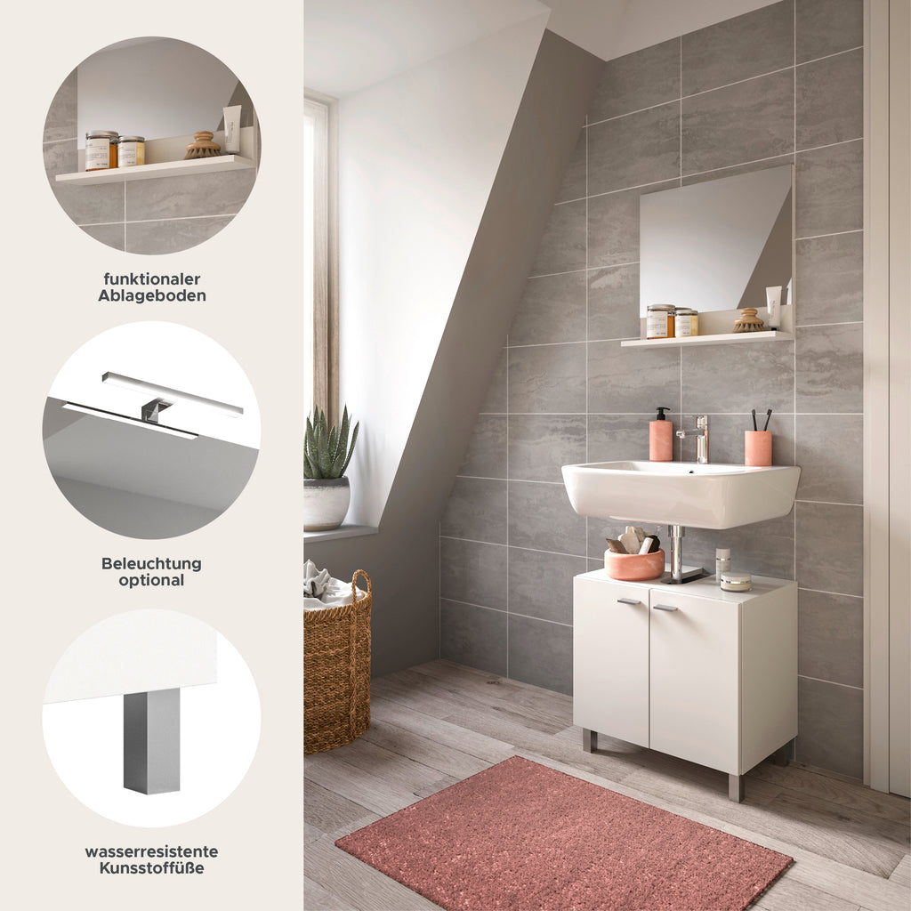 Design/Stil: Schlichte und moderne Badkombination in strahlendem Weiß für ein helles und zeitgemäßes Erscheinungsbild im Badezimmer.
