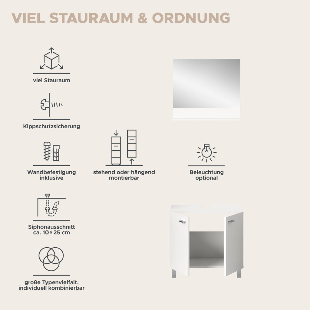 Boston 2tlg. Badmöbel Set bodenstehend hängend montierbar ca.57x186x33 cm