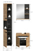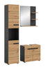 Die Badkombination (B/H/T: 116x193x34 cm) ist die perfekte Wahl für moderne Badezimmer, die Funktionalität und Ästhetik vereinen möchten. Die Kombination aus Basalt Grau Nachbildung und Artisan Nachbildung mit natürlicher Holzoptik und schwarzen Akzenten verleiht den Möbelstücken einen eleganten und zeitlosen Charakter. Alle Elemente der Badkombination – vom Hochschrank bis zum Waschtischunterschrank – sind optisch aufeinander abgestimmt und sorgen für ein harmonisches und einheitliches Erscheinungsbild. Die Möbel bieten vielseitige Stauraumlösungen, die sowohl praktisch als auch platzsparend sind. Gefertigt aus FSC®-zertifiziertem Holzwerkstoff, trägt diese Badkombination zum Schutz der Wälder bei und steht für nachhaltige Qualität. Diese Badmöbel-Kombination ist ideal, um Ihr Badezimmer stilvoll und funktional zu gestalten und gleichzeitig einen Beitrag zur Umwelt zu leisten.