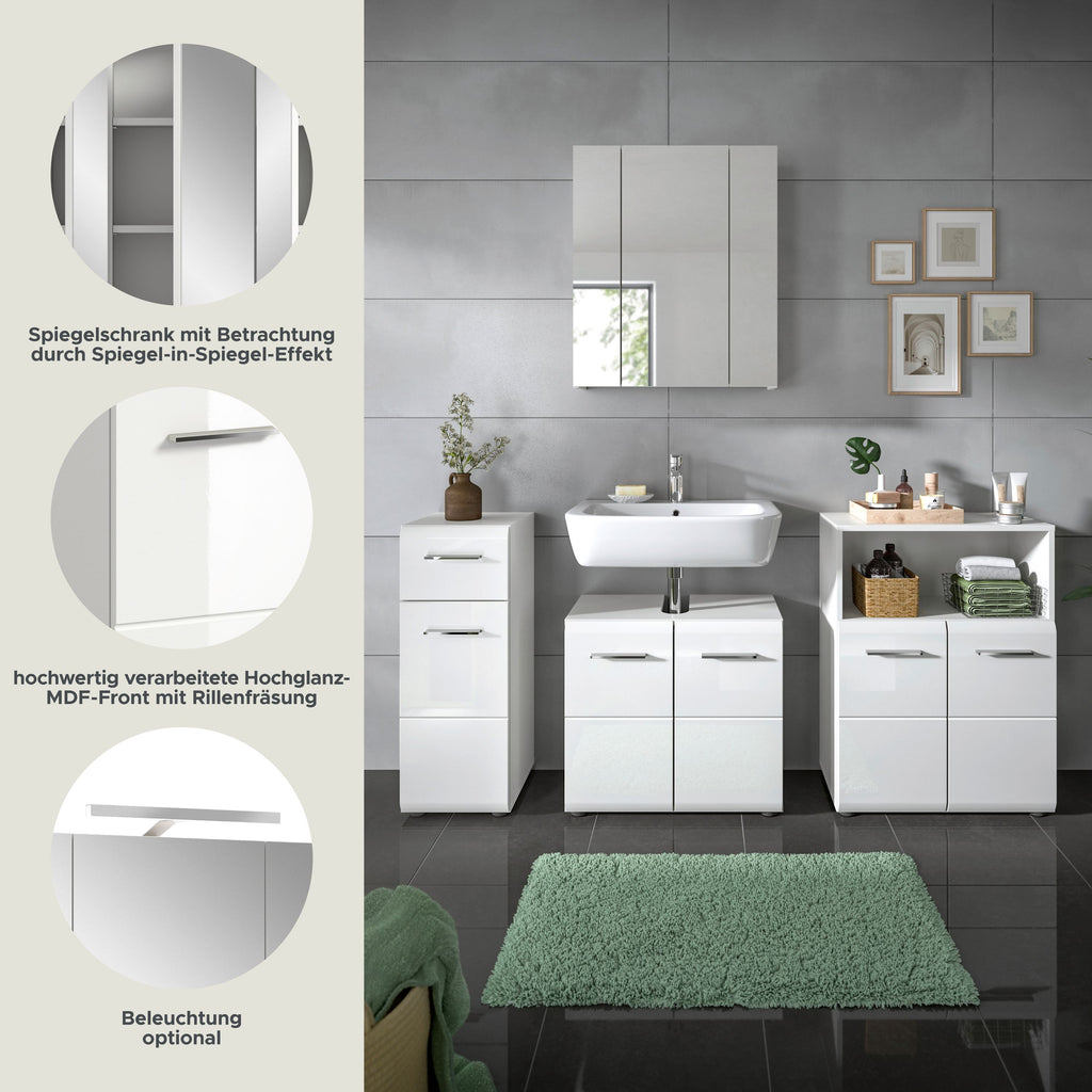 Design/Stil: Modernes und elegantes Design mit weißer Hochglanzoberfläche für eine ansprechende und zeitgemäße Ästhetik im Badezimmer.