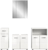 Entdecken Sie unsere elegante Badezimmer Badkombination in strahlendem Weiß, vereint mit hochglänzenden tiefgezogenen Elementen für zeitlose Eleganz. Diese durchdachte Kombination aus verschiedenen Badmöbeln in Weiß-Nachbildung bietet nicht nur Stauraum für Ihre Badutensilien, sondern verleiht Ihrem Badezimmer auch einen modernen und aufgeräumten Look.