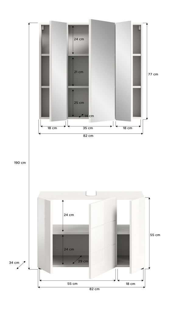 Vira Badezimmerkombination 82x190x34 cm inkl. Beleuchtung