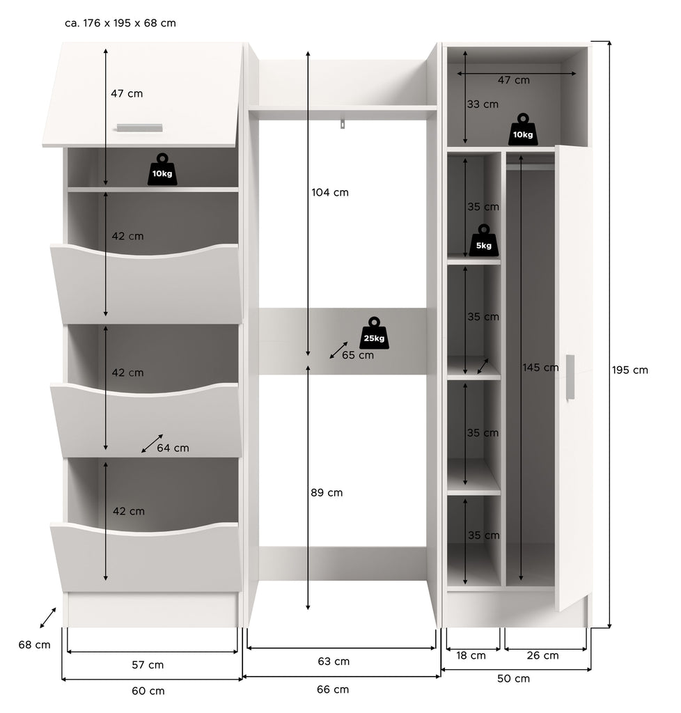 Das Waschmaschinenumbau Set (B/H/T: 166x195x62 cm) in weiß Nachbildung überzeugt durch seine Funktionalität und stilvolle Gestaltung. Dieses 3-teilige Set besteht aus einem Wäscheschrank, einem Waschmaschinenschrank und einem Universalschrank, um all Ihre Wäscheutensilien ordentlich zu verstauen. Die moderne Farbgebung fügt sich harmonisch in jede Waschküche ein und sorgt für einen organisierten Look. Schaffen Sie Platz und Stil in Ihrem Badezimmer oder Ihrer Waschküche mit diesem praktischen Set! Praktische Ergänzung für jeden Hauswirtschaftsraum.