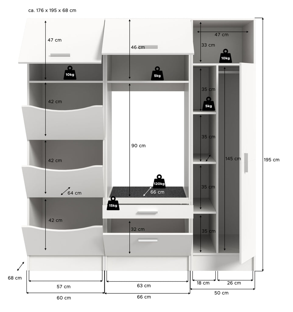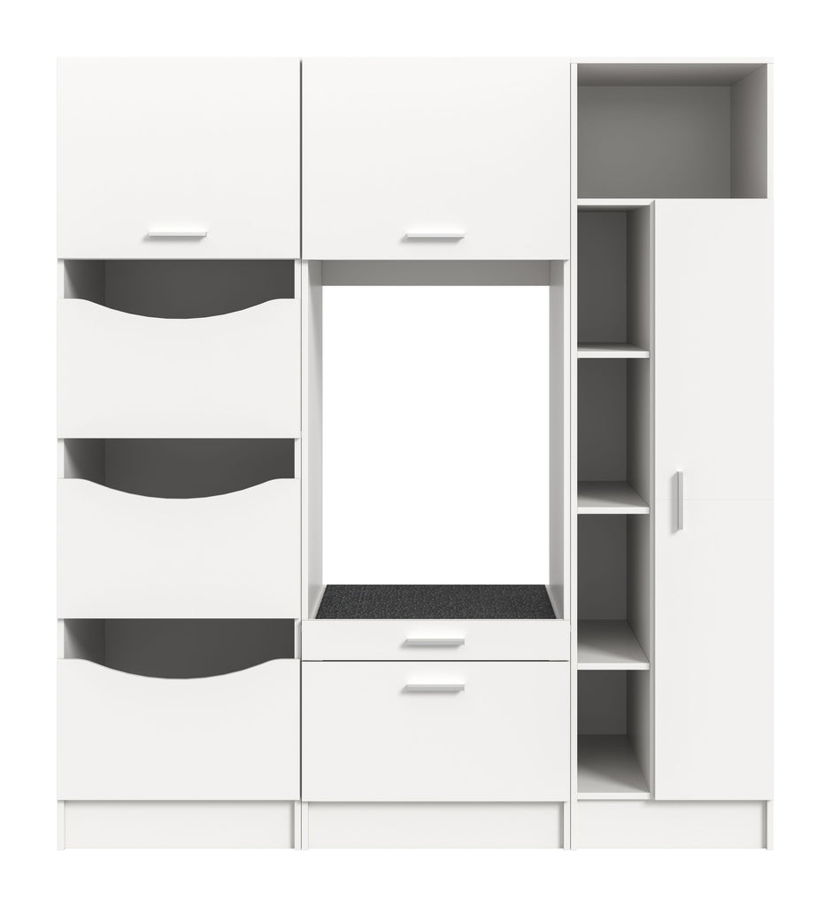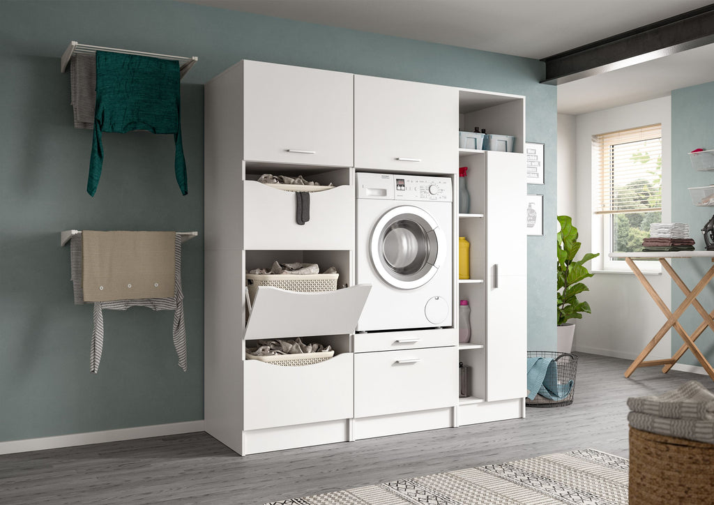 Entdecken Sie das Waschmaschinenumbau Set (B/H/T: 166x195x68 cm) in stilvoller weiß Nachbildung! Dieses 3-teilige Set bietet Ihnen einen Wäscheschrank, einen Waschmaschinenschrank und einen praktischen Universalschrank, ideal zur Aufbewahrung Ihrer Wäschereibedarf. Die hochwertige Verarbeitung und die moderne Optik bringen Ordnung und Stil in Ihre Waschküche. Setzen Sie auf diese durchdachte Lösung, um Ihren Raum optimal zu nutzen! Perfekt für die Nutzung im Hauswirtschaftsraum.