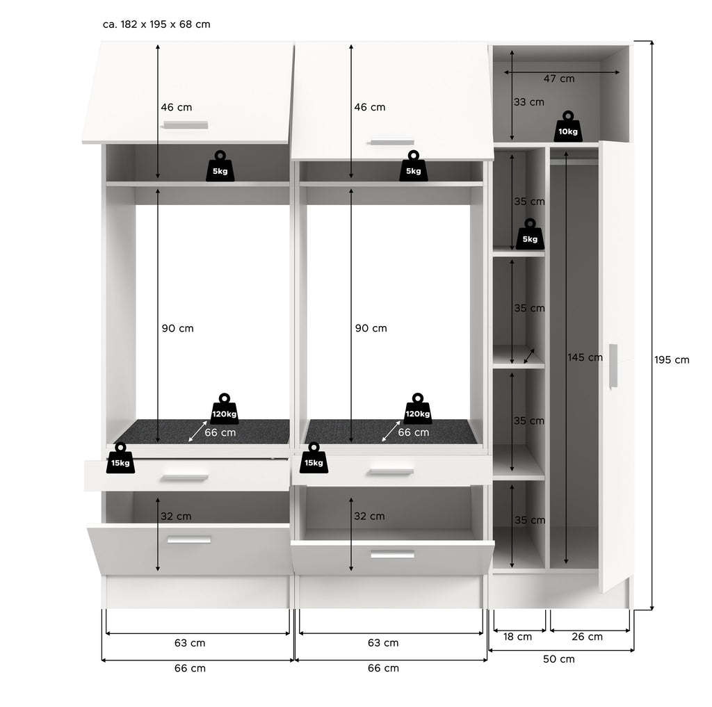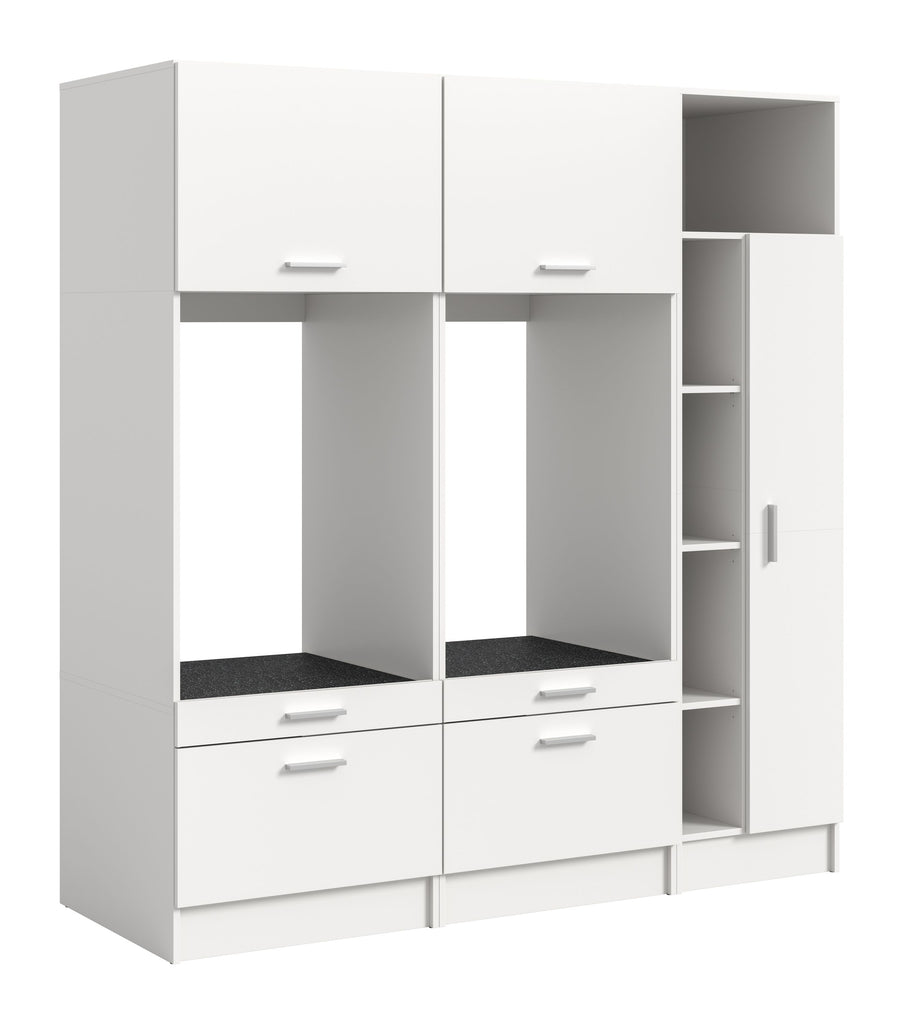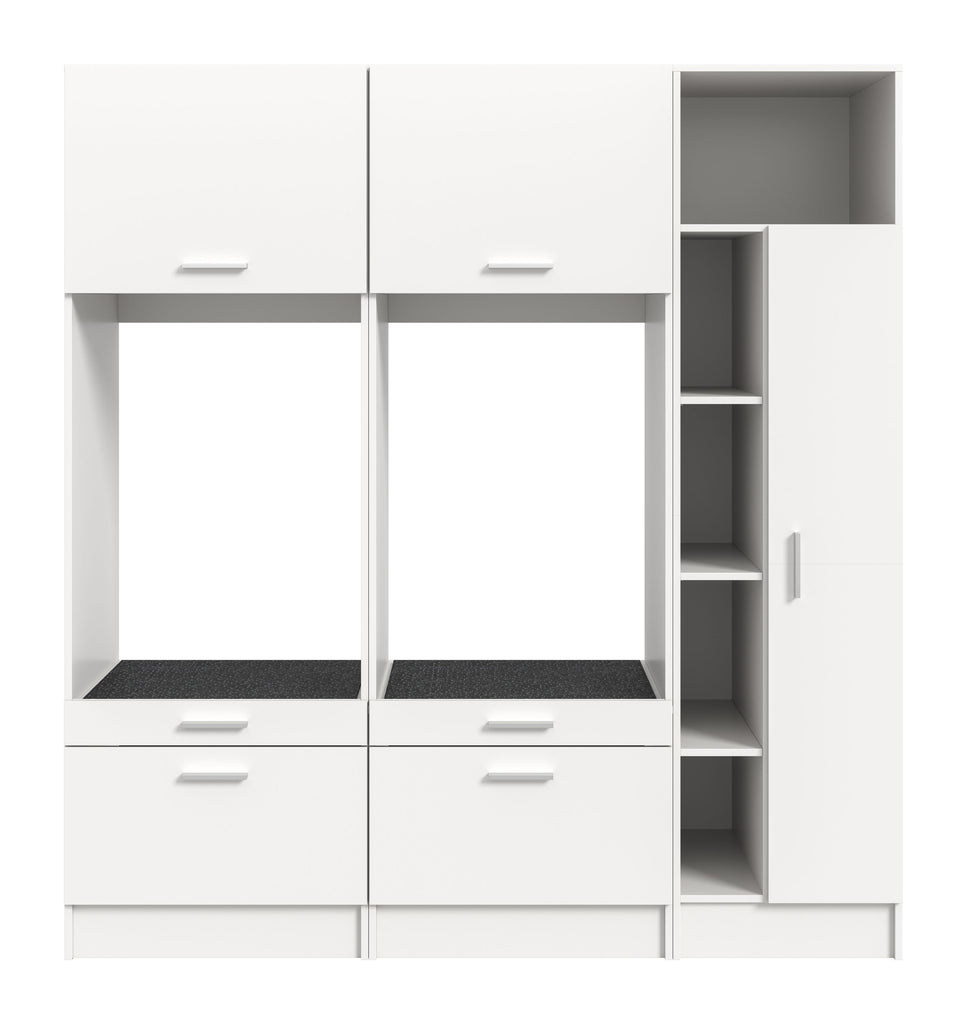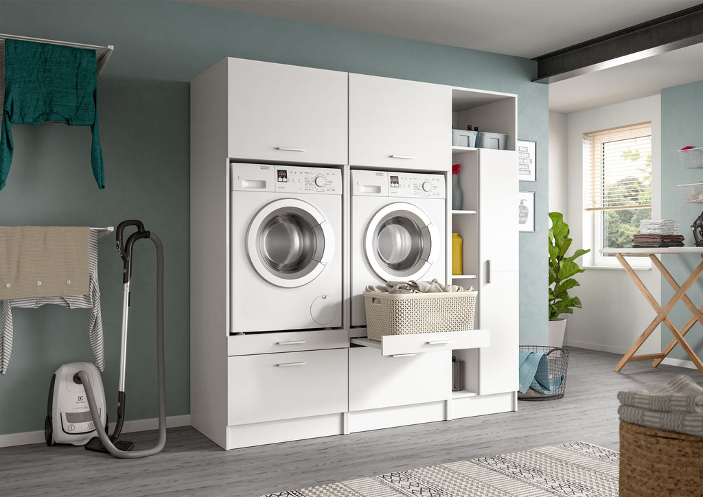 Entdecken Sie das Waschmaschinenumbau Set (B/H/T: 183x195x68 cm) in eleganter weißer Nachbildung! Dieses 3-teilige Set umfasst einen Universalschrank und zwei Waschmaschinenschränke, die Ihnen helfen, Ihre Wäscheutensilien sinnvoll zu organisieren und Platz zu sparen. Die moderne Gestaltung sorgt für einen ansprechenden Look in Ihrer Waschküche, während die praktische Aufbewahrung für Ordnung sorgt. Verwandle Sie Ihren Waschküchenraum in einen stilvollen und funktionalen Bereich! Ideal, um Ordnung im Hauswirtschaftsraum zu schaffen.