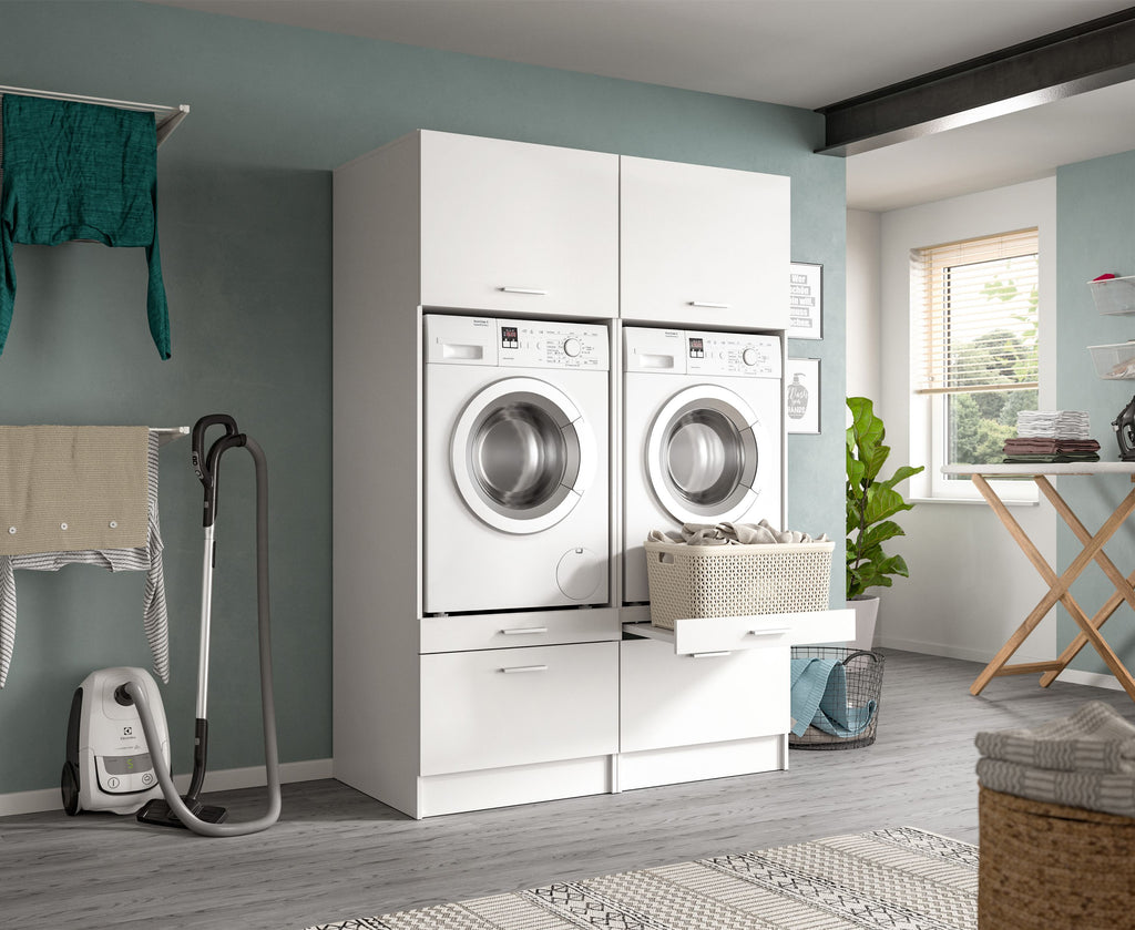 Das Waschmaschinenumbau Set (B/H/T: 133x195x68 cm) in weiß Nachbildung ist perfekt für alle, die eine praktische und stilvolle Lösung für ihre Waschküche suchen! Dieses 2-teilige Set beinhaltet zwei Waschmaschinenschränke, die für ausreichend Stauraum sorgen und gleichzeitig einen modernen Look verleihen. Die hochwertige Verarbeitung und das ansprechende Design machen dieses Set zu einer idealen Wahl für Ihr Zuhause. Bringen Sie Ordnung und Stil in Ihre Waschküche mit diesem funktionalen Set! Optimal für den Einsatz im Hauswirtschaftsraum.